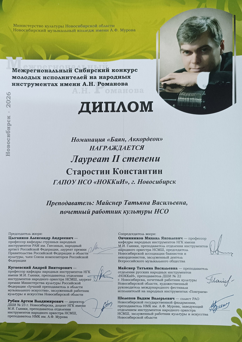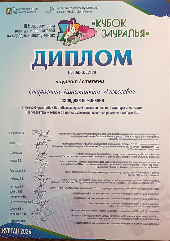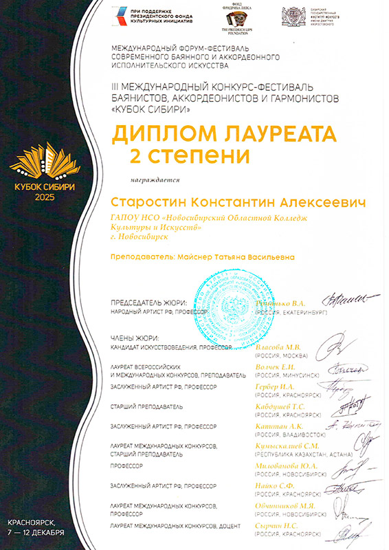 Лауреат 2 степени: Старостин Константин