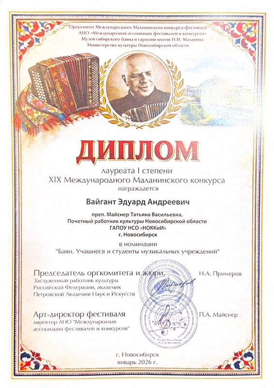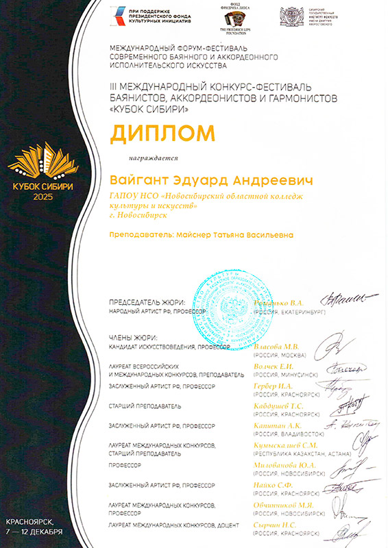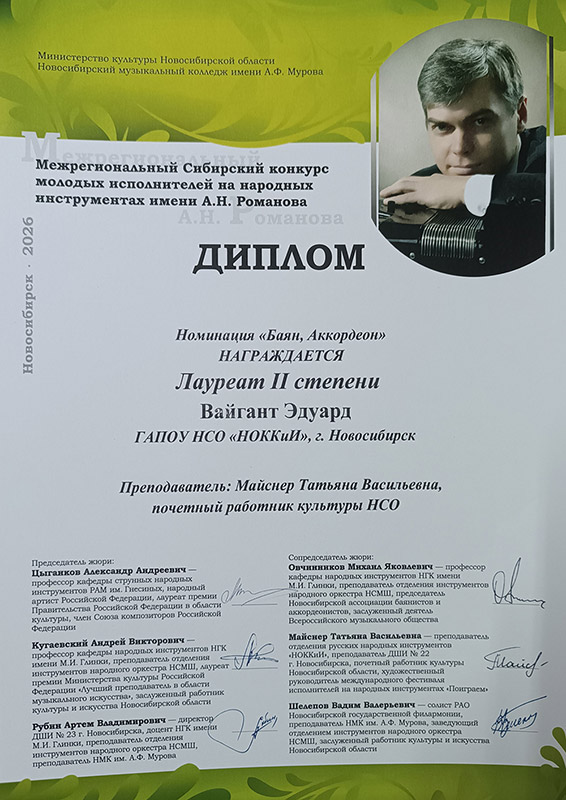 Лауреат 1 степени: Вайгант Эдуард