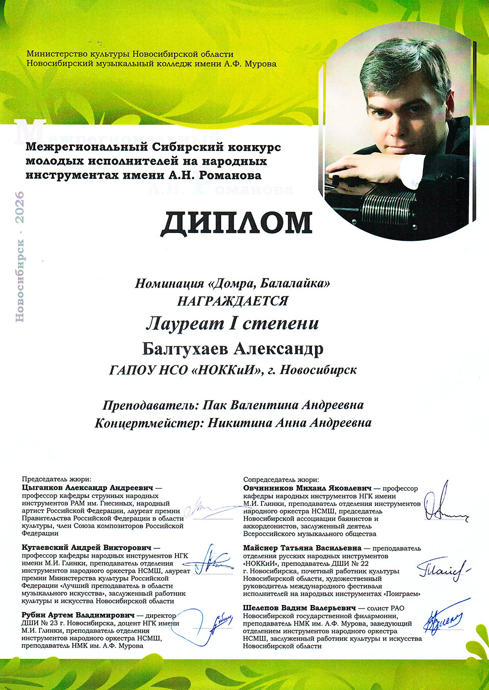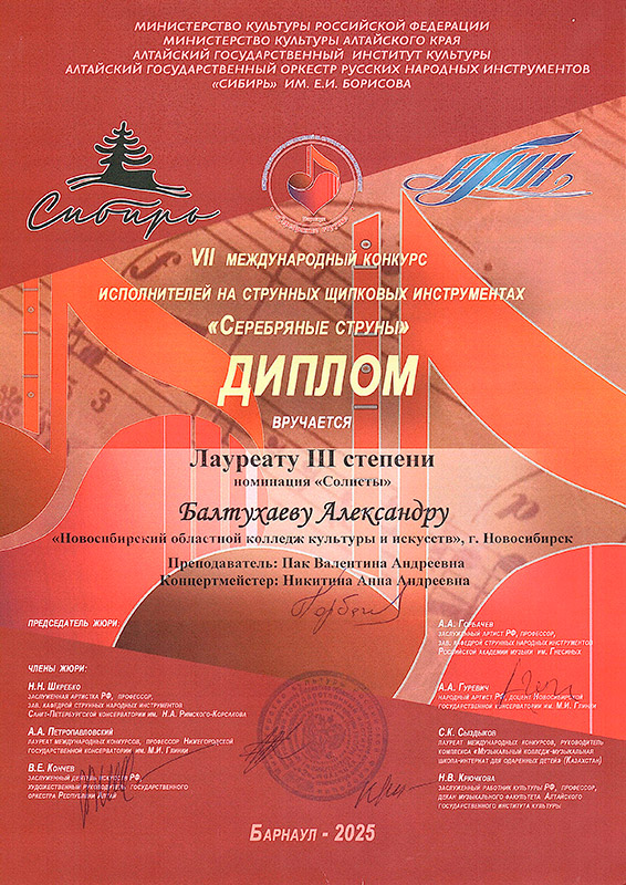 Лауреат 1 степени: Александр Балтухаев