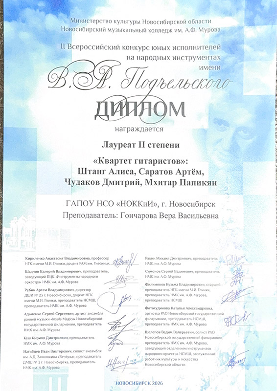 Лауреат 2 степени: Квартет гитаристов