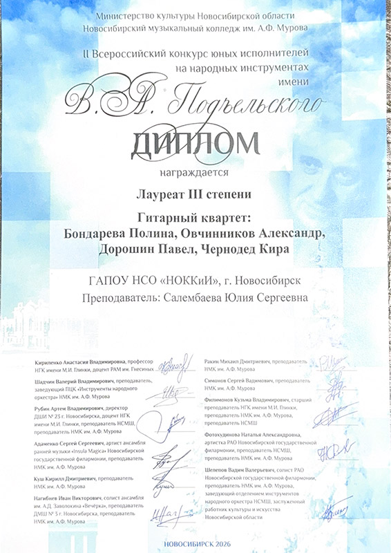 Лауреат 1 степени: трио Максим Пасканнов, Софья Кочкинекова, Денис Нечаенко