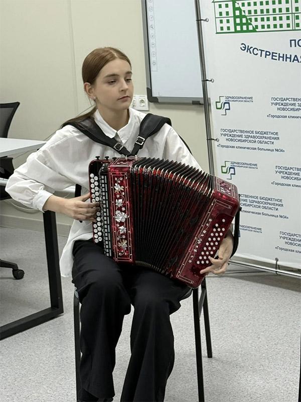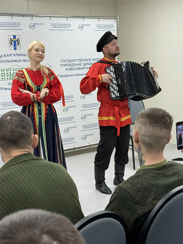 Подготовили особый подарок - праздничную программу для участников специальной военной операции, которые проходят лечение в больнице №34. Перед бойцами выступили: Софья Сенькова, Алиса Баскакова, Софья Рябкова, Анастасия Шмидт, Иван Любас. Концертмейстер: Антон Владимирович Грибанов.