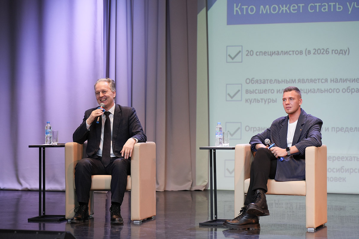 Заместитель министра в разговоре со студентами подробно остановился на условиях программы "Земский работник культуры" и ответил на самые острые вопросы: облагается ли сумма налогом? Нет, миллион выплачивается полностью. Есть ли возрастные ограничения? Нет, но участник должен быть гражданином России. Сколько вакансий предусмотрено по программе в Новосибирской области? В этом году - 20 мест. Актуальные предложения от учреждений культуры появятся в открытом доступе уже в марте. Владимир Геннадьевич подчеркнул: программа направлена на то, чтобы талантливые специалисты оставались в профессии и при этом имели достойную поддержку от государства.