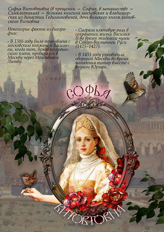 Софья Витовтовна - образ дипломата и "министра иностранных дел". Великая княгиня, чей авторитет и родственные связи с правящими домами Европы долгие годы обеспечивали стабильность и международный вес Московского княжества.